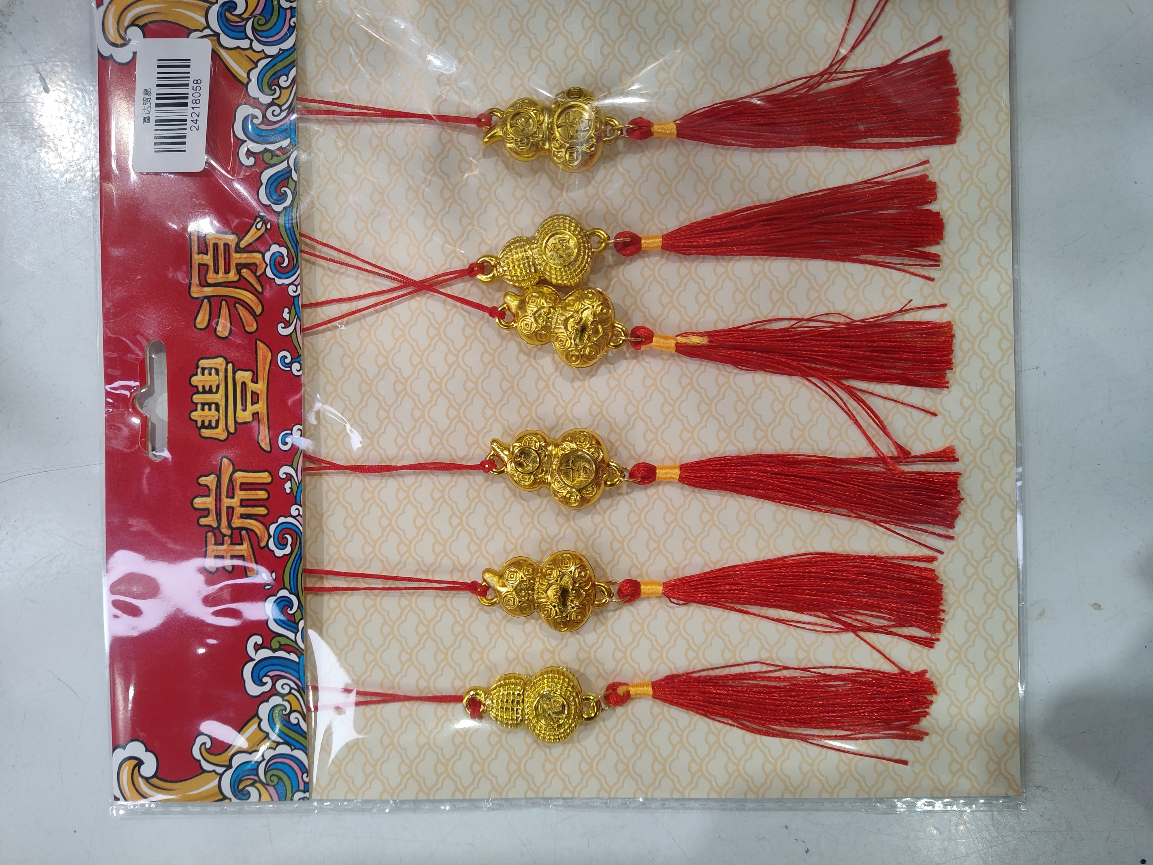 (年货)金箔灯笼6件小银柳挂饰